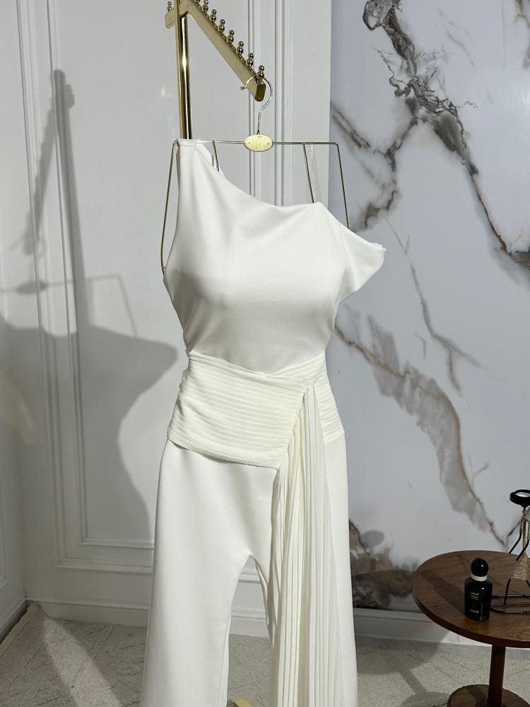 فستان ناعم ابيض جمبسوت لإطلالة ناعمة وخلابة